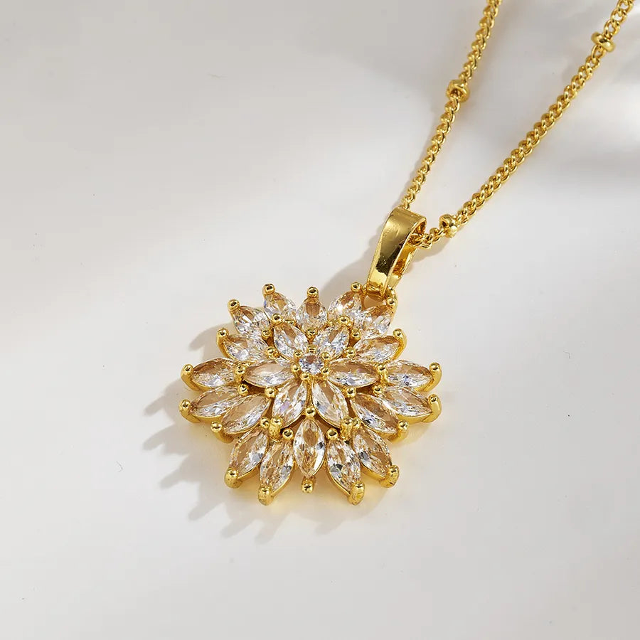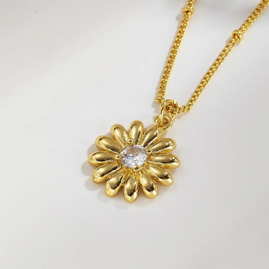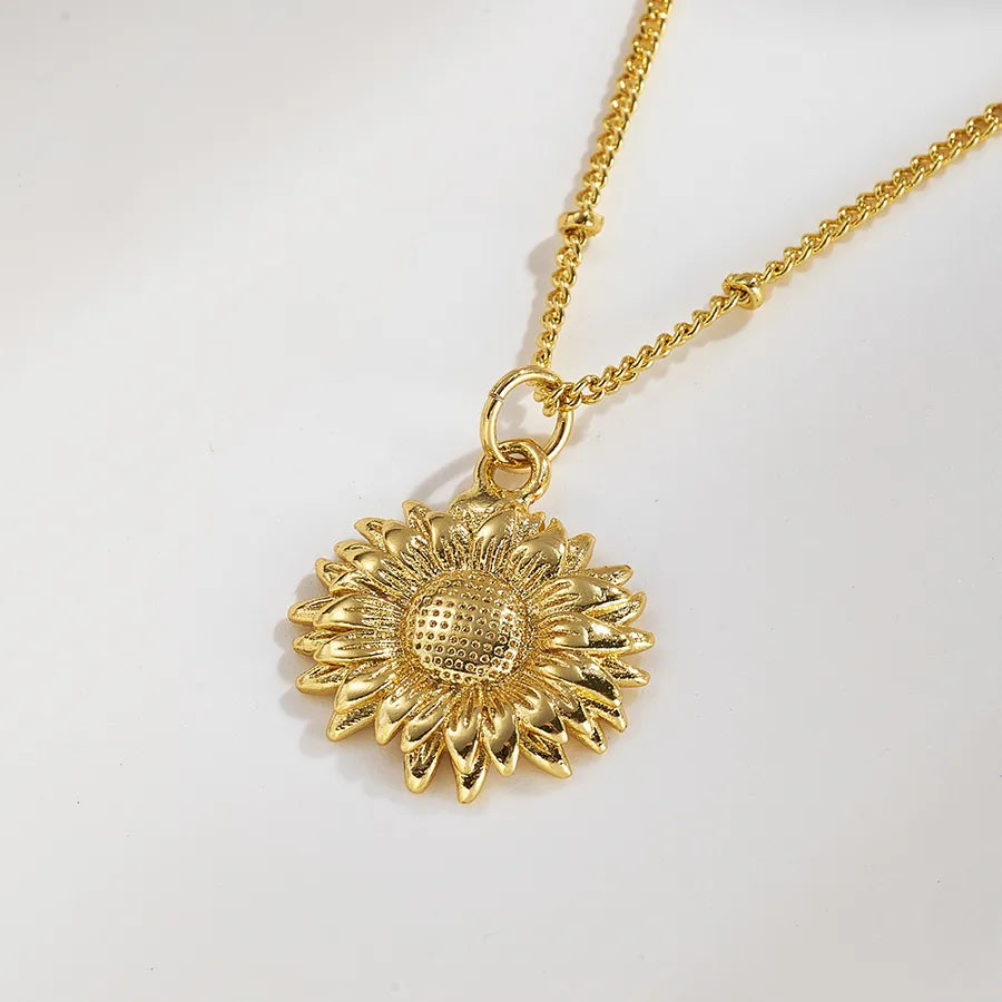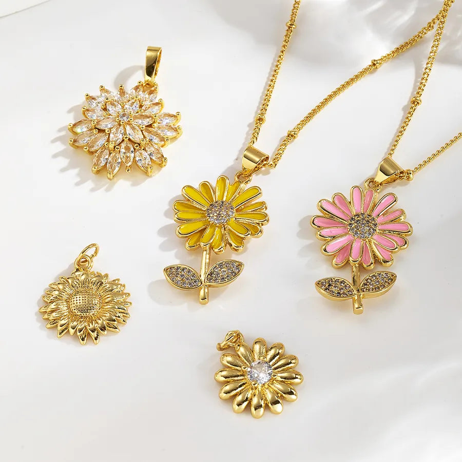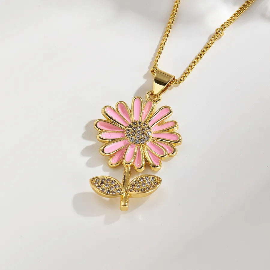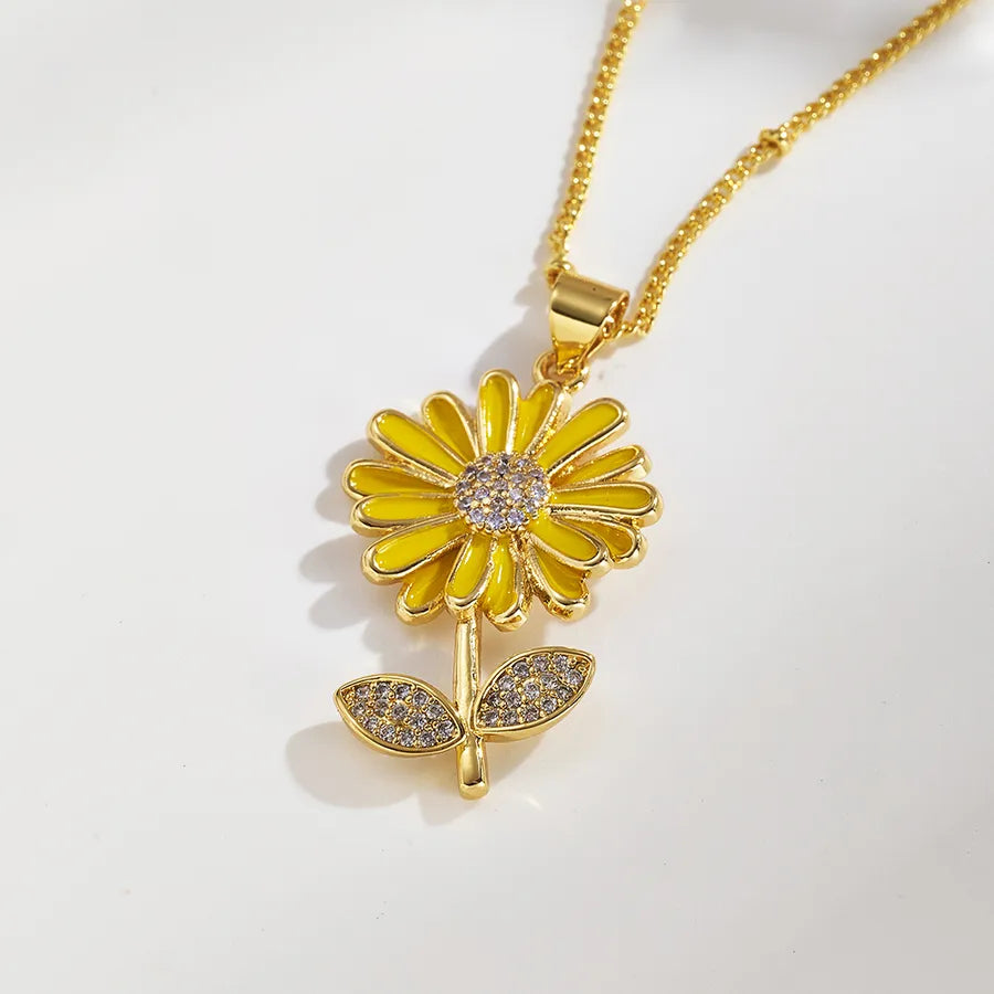 Electroplating 18K Real Gold Plated Sunflower Flower Copper IG Style Basic Sweet Enamel Plating Three-dimensional Lobster Trigger Clasp Closure Pendant Necklace Necklace