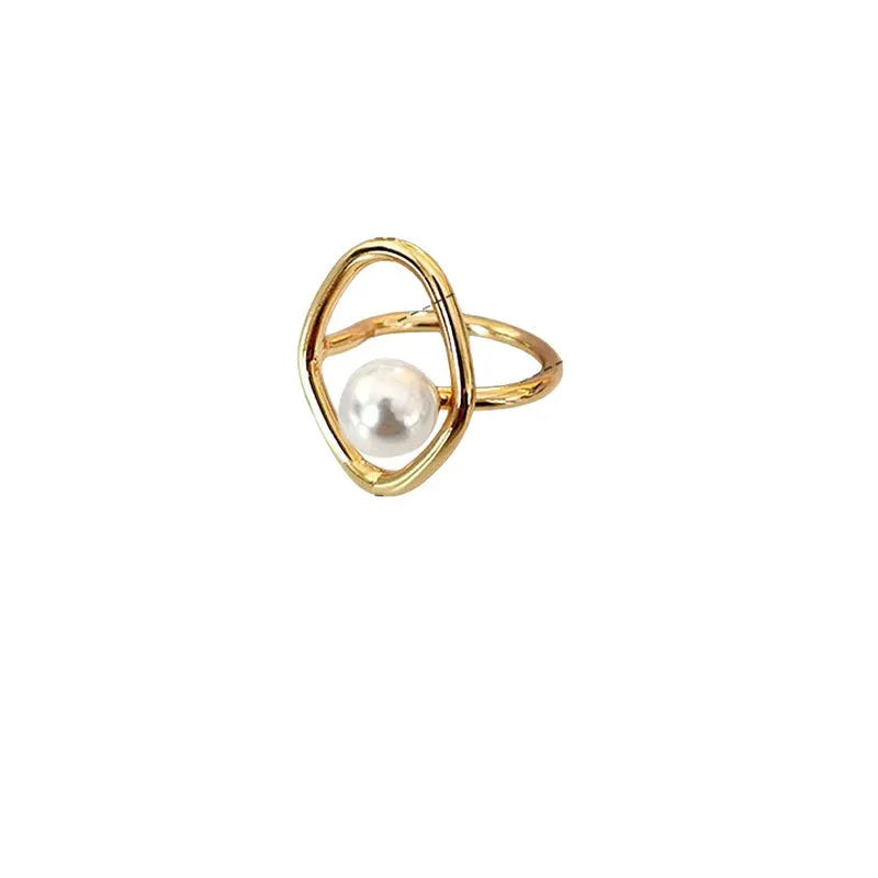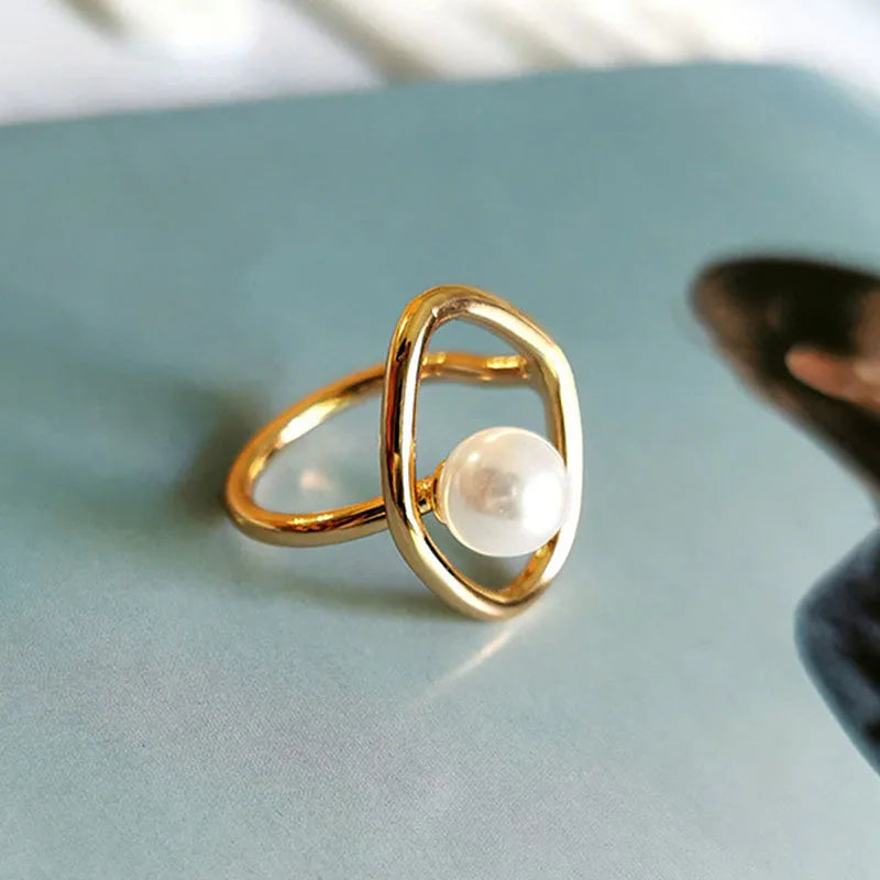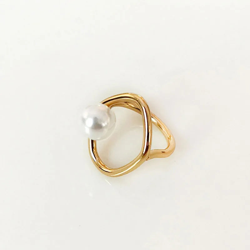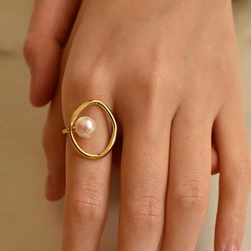 Elegant Geometric Pattern Copper Ring With Electroplated Freshwater Pearl Fashionable Minimalist Style Women's Accessory